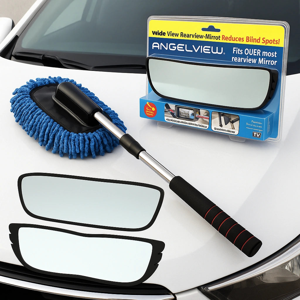 Cepillo para auto con mango ajustable + Espejo Retrovisor Auto